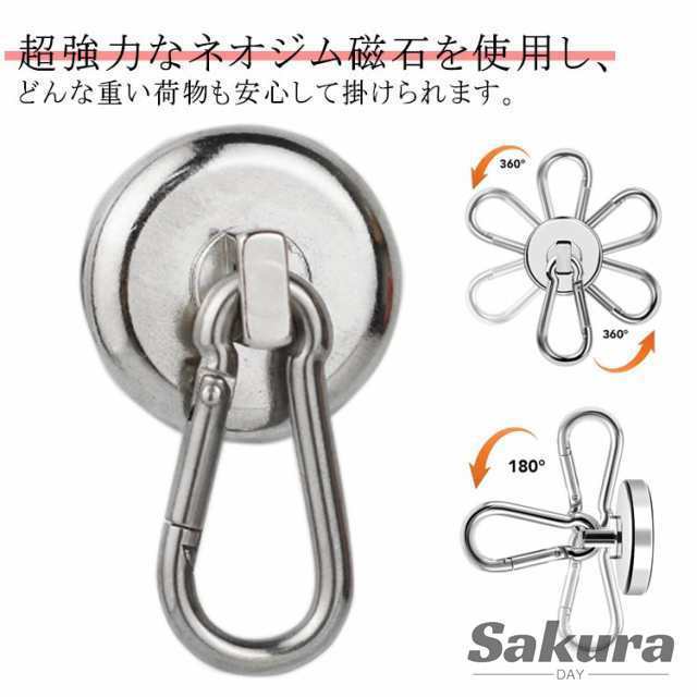 カラビナ 浴室 垂直耐荷重34kg 3タイプ選べる 41kg ラック マグネット マグネットフック 強力 サンシェード オーニング カラビナ付 カラビナ お風呂 55kg オフィス 収納 超強力 キッチン 吊り下げ 2個セット