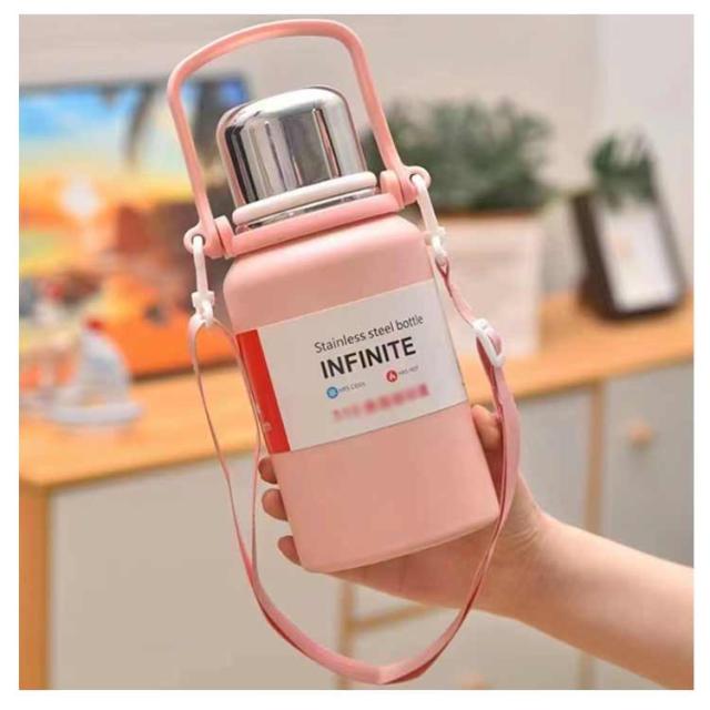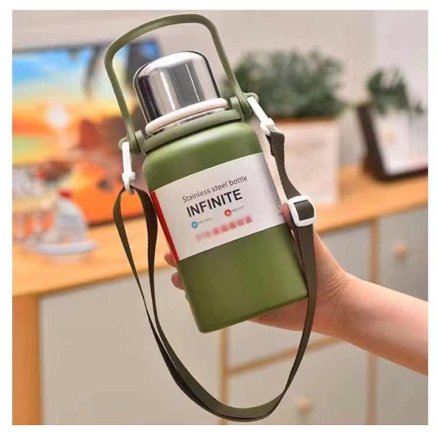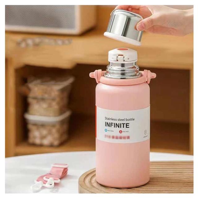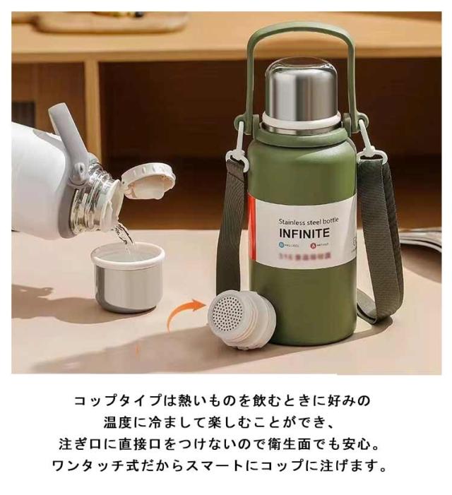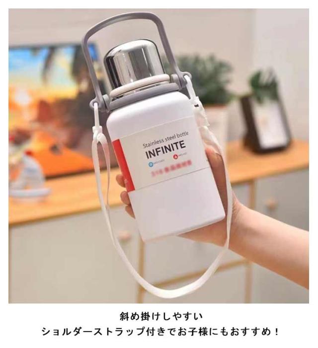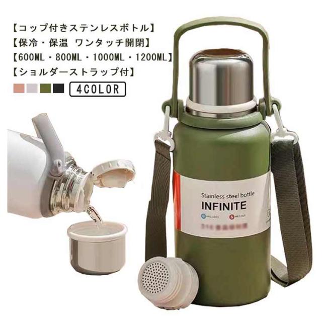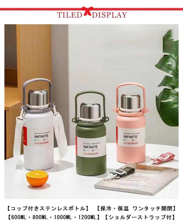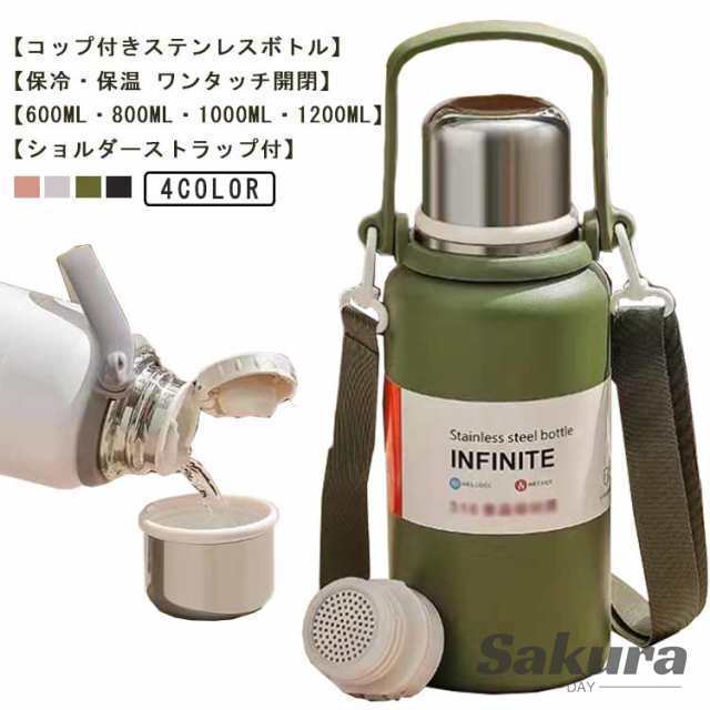 ショルダーストラップ付 肩掛け 水筒 キッズボトル マグボトル 子供用 ワンタッチ式 コップ付き 保冷 ステンレスボトル 水筒 送料無料 男の子 大人用 保温 かわいい 肩ひも付 女の子 入園 学校 アウトドア 600ml 800ml 1000ml