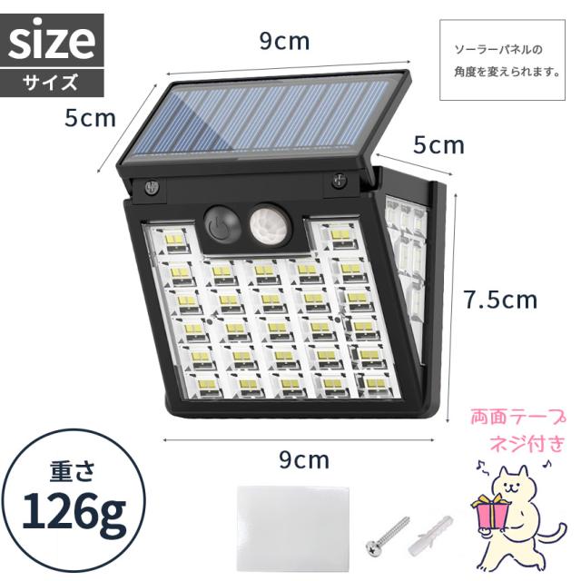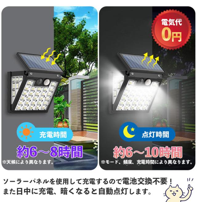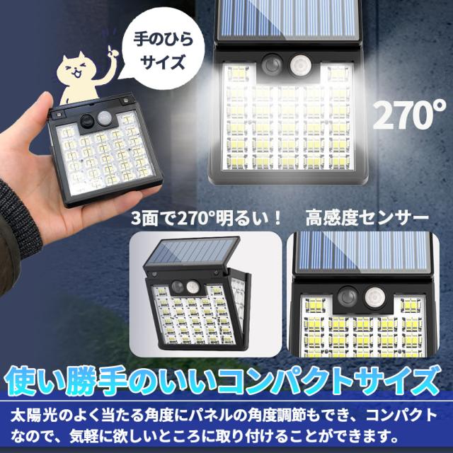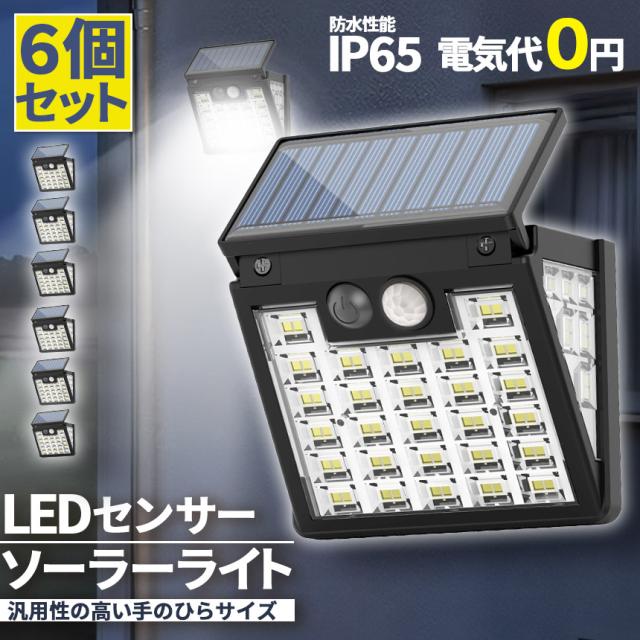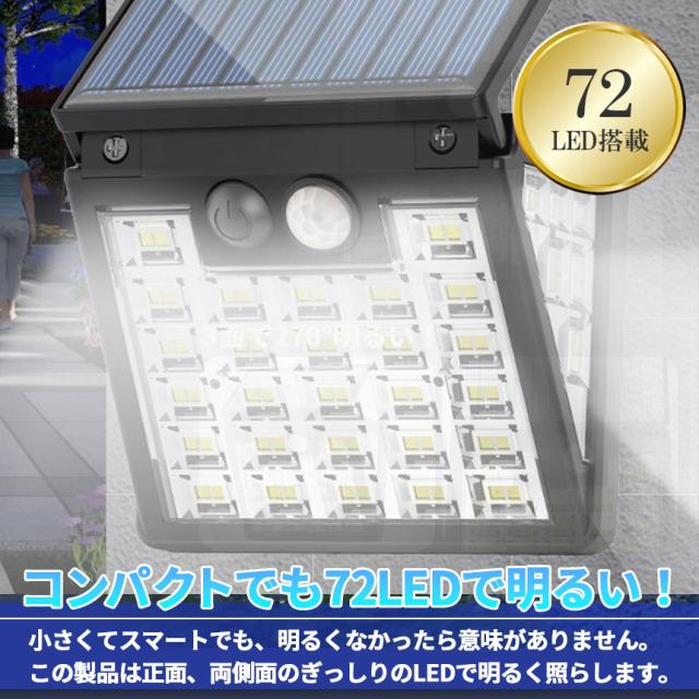 ソーラーライト 6個セット LEDライト センサーライト 72LED ライト 防犯 照明 自動点灯 人感センサー 明暗センサー ソーラー充電 コンパクト 3面 3モード 昼白色 高輝度 明るい ガーデンライト 庭 玄関 倉庫 工場 自宅