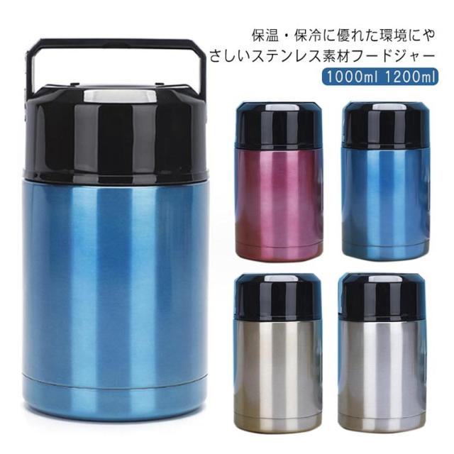 スープボトル お弁当 ランチ 1000ml 保温 ランチジャー 1200ml ステンレス 真空断熱 保温ランチジャー 大容量 スープカップ 水筒 スープ スープジャー 保冷 ストック 持ち運び ハンドル付き 保温弁当箱 キャンプ アウトドア 通勤 通学