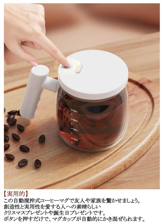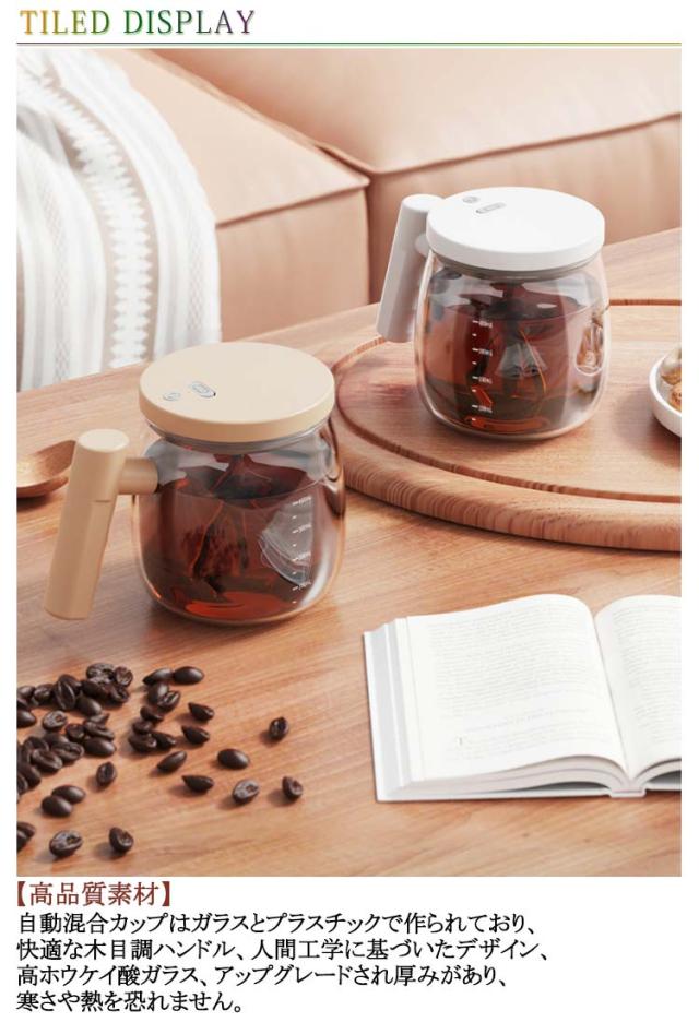 自動ミキサーカップ 自動攪拌 マグカップ 攪拌 ミキシングカップ ガラス製 大容量 400ML 家庭用 蓋付き 漏れ防止 ポータブル ミキシングカップ コーヒーカップ USB充電式 防水 ハンドル付き コーヒー 飲料 お茶カップ オフィス 家庭 仕事 旅行ギフト