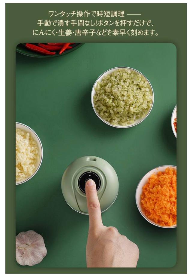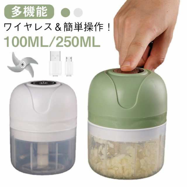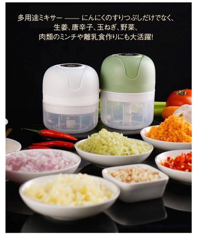 キッチン 電動 みじん切 電動スライサー ガーリッククラッシャ 野菜スライサー 100ml 1台多役 小型 USB ワンタッチ スライス ポータブル 電動スライサー 多機能 充電式 料理 調理用品 離乳食 みじん切り器