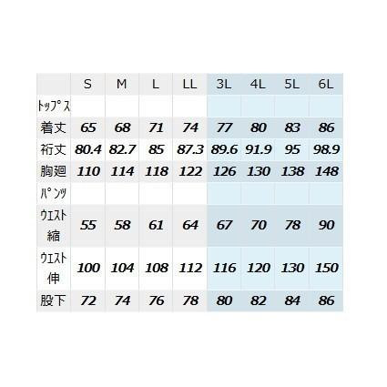 | サイズ | L トップス(着丈:71/裄丈:85/胸廻:118)パンツ(ウエスト縮:61/ウエスト伸:108/股下:76)cm 個装サイズ:30×15×10cm |