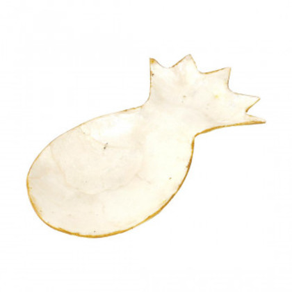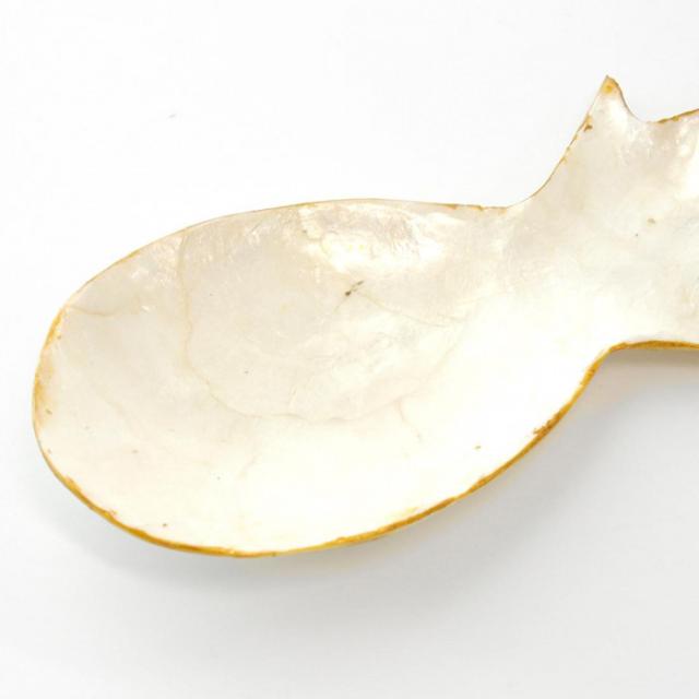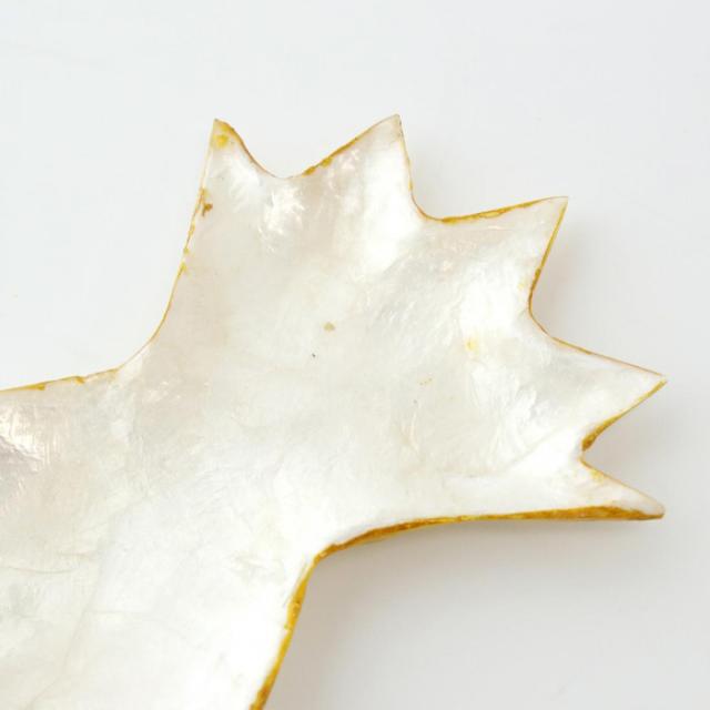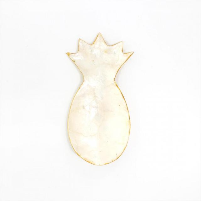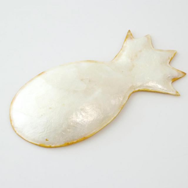 商品詳細:ゴールドのフチとシェルの輝きが美しい、パイナップルモチーフのトレイ。アクセサリートレイや小物入れとして使用しながら、お部屋のインテリアとして空間を華やかに演出します。品質保持のため、表面に樹脂コーティングを施してあります。汚れが付いた場合はぬるま湯でやさしく洗うか、濡らした布巾などでやさしくふき取ってください。 生産国:インドネシア 素材・材質:カピス貝 商品サイズ:約W9×17×H1.5cm