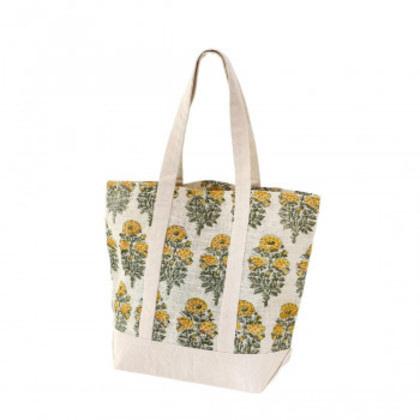 ブロックプリントジュートスクエアバッグ ホワイト×イエローフラワー 15625750545 |b03