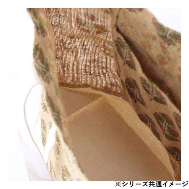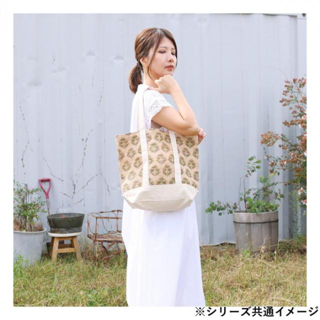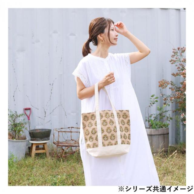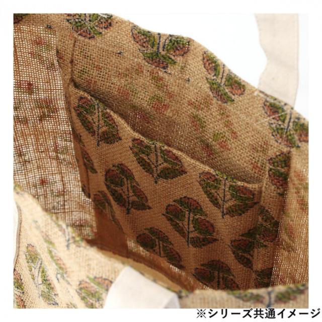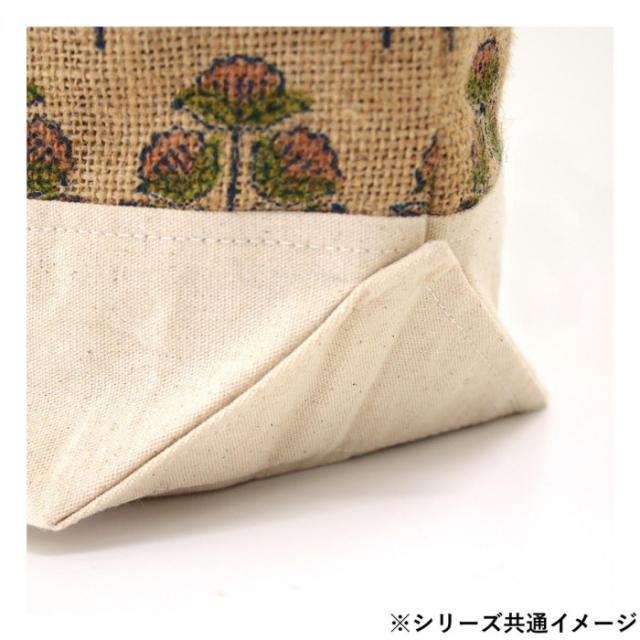 商品詳細:ナチュラルな素材感が楽しめるジュート×キャンバスのコンビネーションバッグ。大きすぎずちょうどいいサイズ感で、肩掛けもできる日常使いにピッタリのバッグです。「ブロックプリント」は、インドの伝統的な技法で、職人が木版を使い、一つ一つ手作業で生地にプリントを施した布です。 生産国:インド 素材・材質:ジュート、綿 商品サイズ:約36×H30×D12.5cm