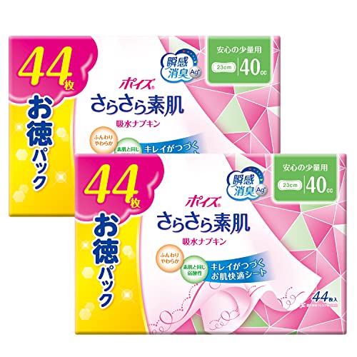 ポイズ さらさら素肌 吸水ナプキン 安心の少量用40cc お徳44枚 (ふとした尿もれケアに)×2個セット