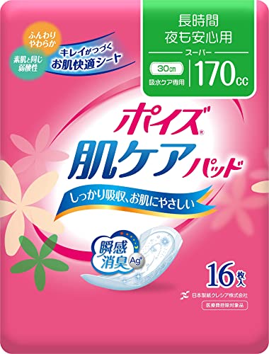 ポイズ 肌ケアパッド 長時間・夜も安心用(スーパー)170cc 16枚 (女性の軽い尿もれ用)