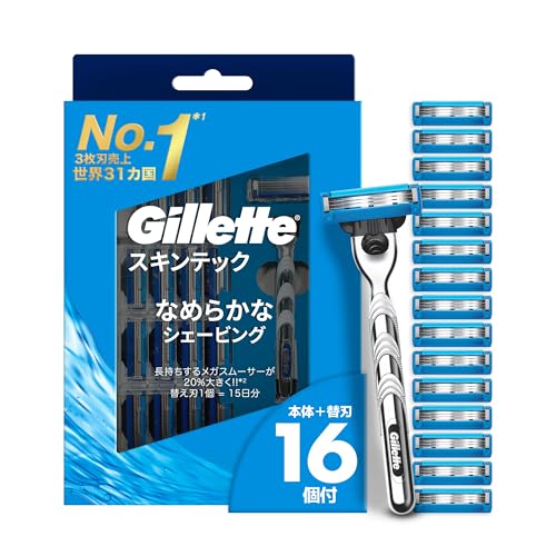 ジレット 髭剃り 本体 替刃 16個 カミソリ 剃刀 メンズ 肌に優しい スキンテック