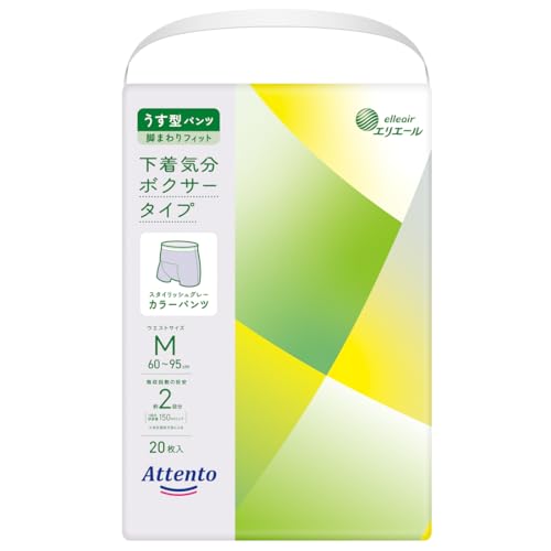 アテント うす型パンツ 下着気分 ボクサータイプ Mサイズ 20枚 スタイリッシュグレー