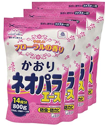 まとめ買いかおりネオパラエース 防虫剤 衣類 引き出し・衣装ケース用 やさしいフローラルの香り 800g×4個