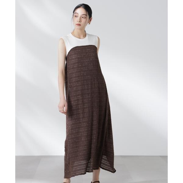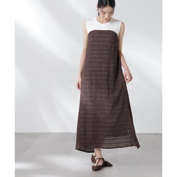一枚で重ね着したようなレイヤードスタイルが完成するカットワンピース。フロントはベア切替でドッキング、後ろは振らしのスリットデザインで前後違う見え方もポイント。楽ちんにお洒落ができる夏のワードローブに追加したいひと品です!