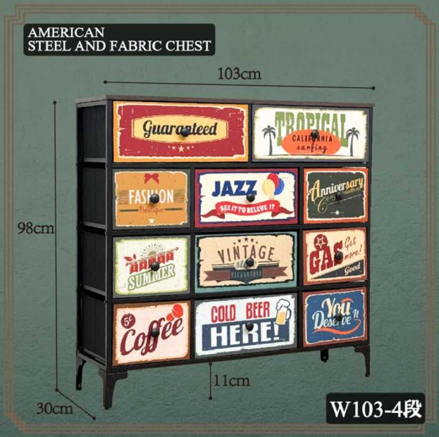 | 品名 | American Steel And Fabric Chest チェスト W103 4段 |
