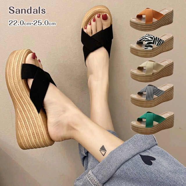 ウェッジソール サンダル クロスベルトサンダル レディース サンダル レディース 厚底サンダル 厚底ヒール 歩きやすい ル レディースサンダル レディース ヒール 疲れない おしゃれ サンダル ウエッジソール 大きいサイズ ミュールサンダル 7CMヒール