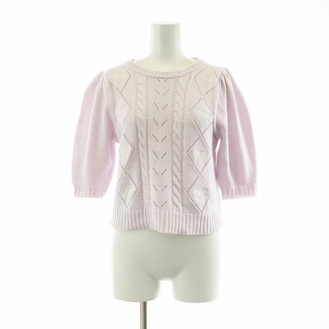 【中古】ファーファー furfur 24SS リボン刺繍ニットトップス 半袖 F ピンク RWNT241095 /NQ レディース