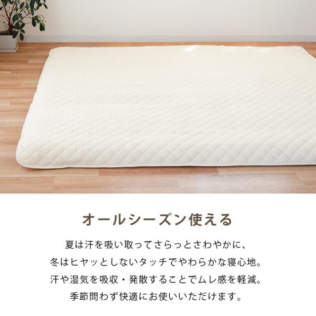 | ・汗をかいてもサラサラ快適 きめ細やかでふんわりと長めのループが特徴的なシンカーパイル織りを採用。 お肌に直接触れるパイル部分に、天然素材の綿を使用。 夏は汗を吸い取ってさらっとさわやかに、冬はヒヤッとしないタッチでやわらかな寝心地。 ご家庭でお洗濯OKだから毎日清潔にお使いいただけます。 ベッドマットレスにも、敷き布団にも使えます。 ちょっとしたリラックスタイムにも快適なごろ寝マットサイズから、家族みんなで広々寝られるファミリーサイズまで幅広くご用意! | |