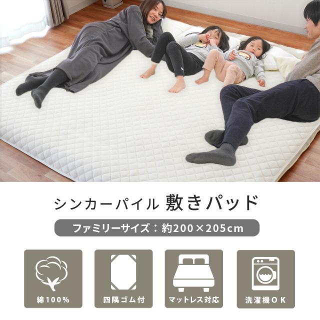 さらさら タオル地 敷きパッド 200×205cm ファミリー パイル部 綿100% ワイドキング 夏用 シンカーパイル パイル キルト 吸水 速乾【haru】