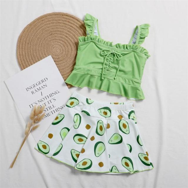キッズ水着 子供 水着セット ガール タンキニ ビキニ スカート ショーツ アボカド ビーチウェア 学生 可愛い 女の子水着