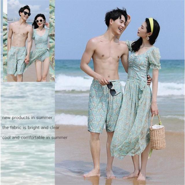 水着セット カップル水着 ペアルック レディース ビキニ モノキニ スカート 花柄 メンズ 海パン サーフパンツ 男女ビーチウェア