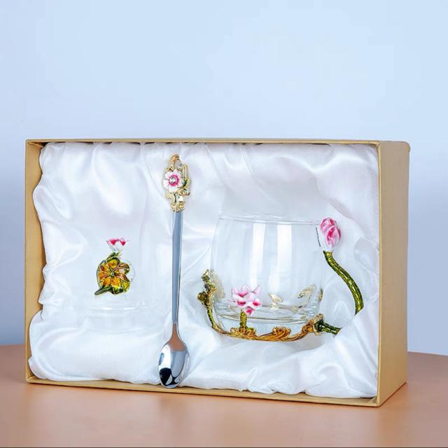 A034997花柄 コーヒーカップ ガラス製 ティーカップ 3点セット食器 コーヒーカップ