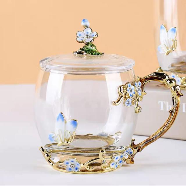 A035002花柄 コーヒーカップ ガラス製 ティーカップ 3点セット食器 コーヒーカップ