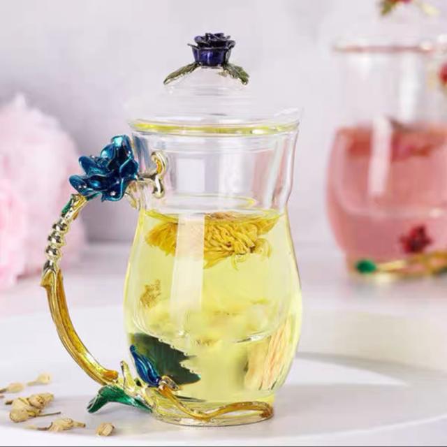 A035011バラ花柄 コーヒーカップ ガラス製 ティーカップセット食器 コーヒーカップ