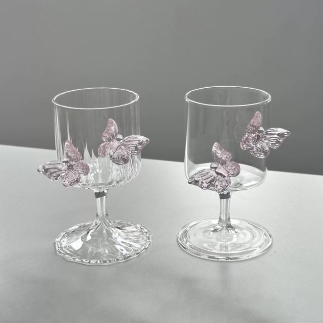 蝶々デザイン ガラスゴブレット ロマンティック&エレガントな装飾付きワイングラス