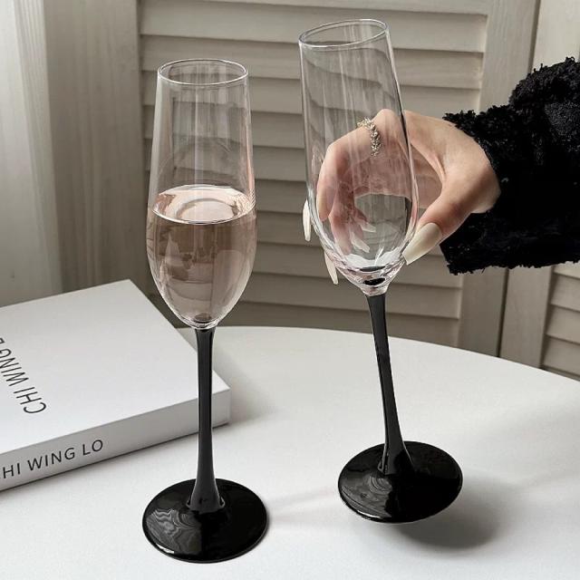 モダンデザイン シャンパングラス ブラックステム 高級感あふれるフルートグラス