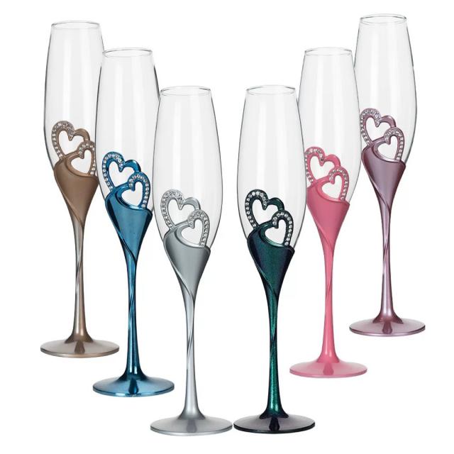 ダブルハート シャンパングラス ペアセット エレガントなクリスタル装飾付き