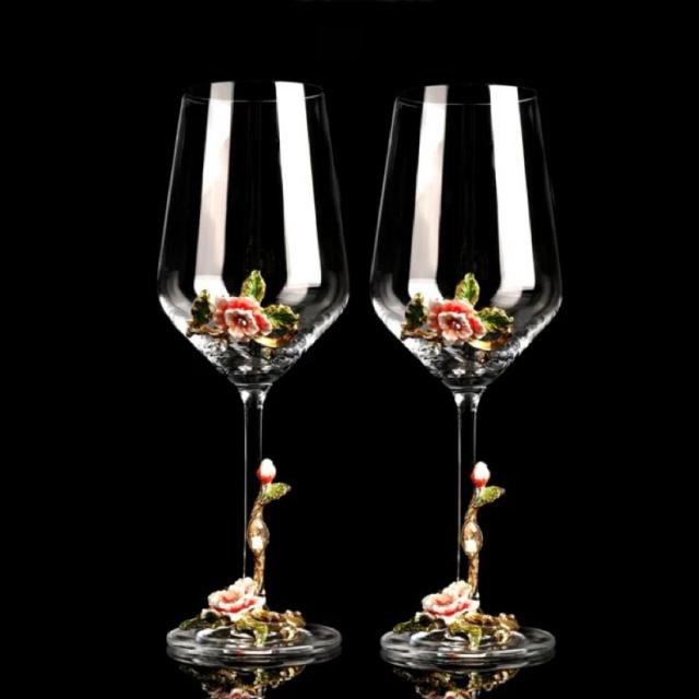 華やかさと上品さを兼ね備えたレッドローズ装飾のペアワイングラスセットです。