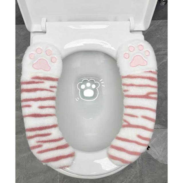 ふわふわ猫肉球トイレ便座カバー クッションシート取り外し簡単 洗える トイレ用品