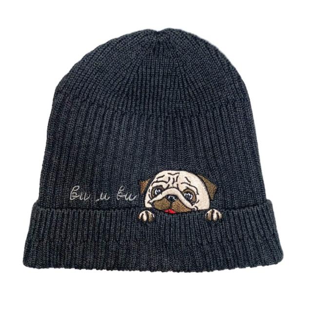 パグpug 刺繍キャップ 帽子 ニット帽 犬雑貨・犬グッズ 犬柄