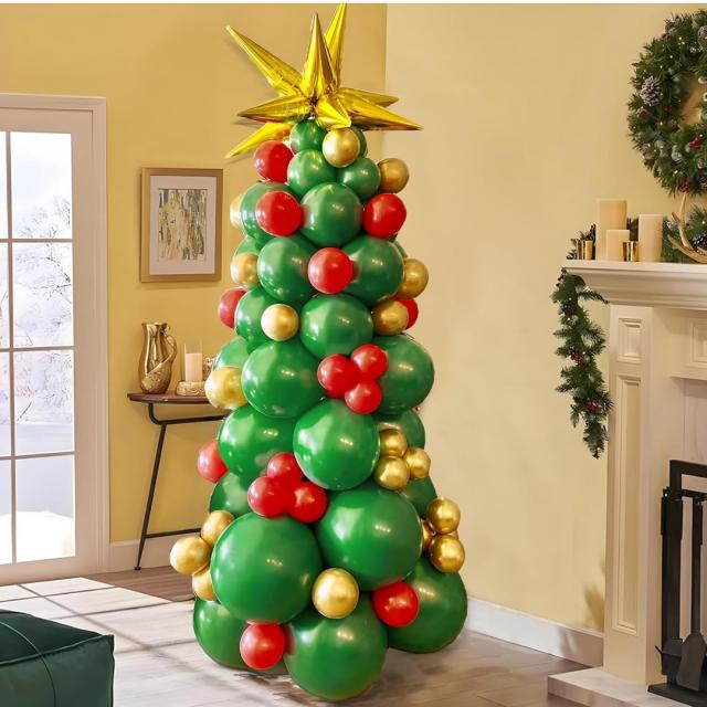 雰囲気満点:このクリスマス 風船は94点の大量なセットで、一層ずつ重ねてばクリスマスツリーになります。赤い風船と金色の風船はオーナメントのようにツリーを飾ります。ぷくぷくの見た目で、室内のクリスマス 飾りだけでなく、玄関やベランダ、お庭などの場所に装飾できます