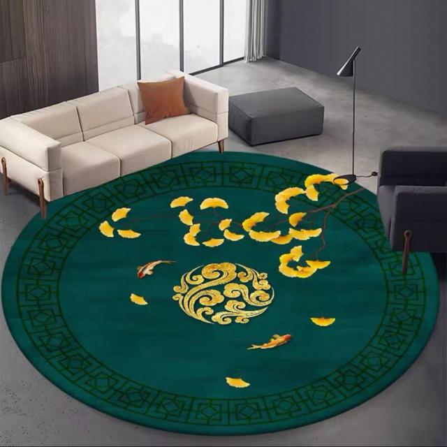 和風モダン円形ラグマット 玄関マット リビングカーペット 金魚と銀杏デザイン