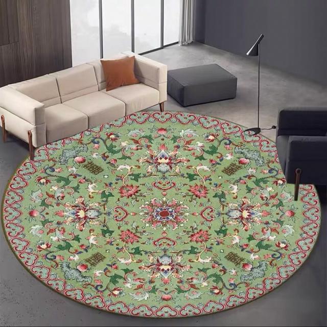 和風高級円形ラグ 緑色フローラルデザイン リビングルーム用カーペット 玄関マット