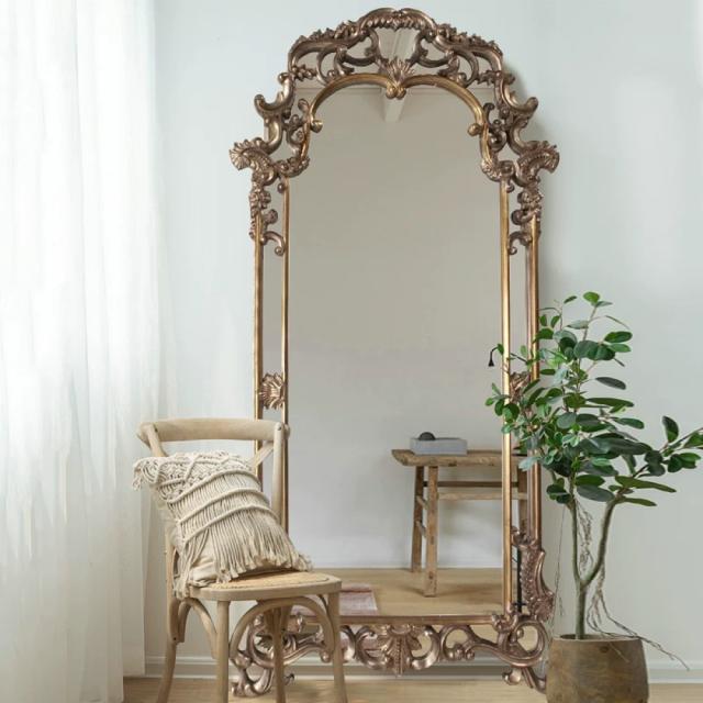 高級感 全身ミラー 豪華鏡 全身鏡 姿見鏡アンティーク調 壁掛け ウォールミラー