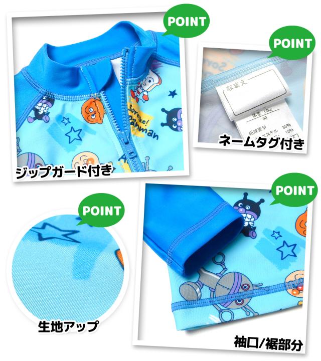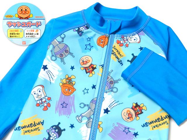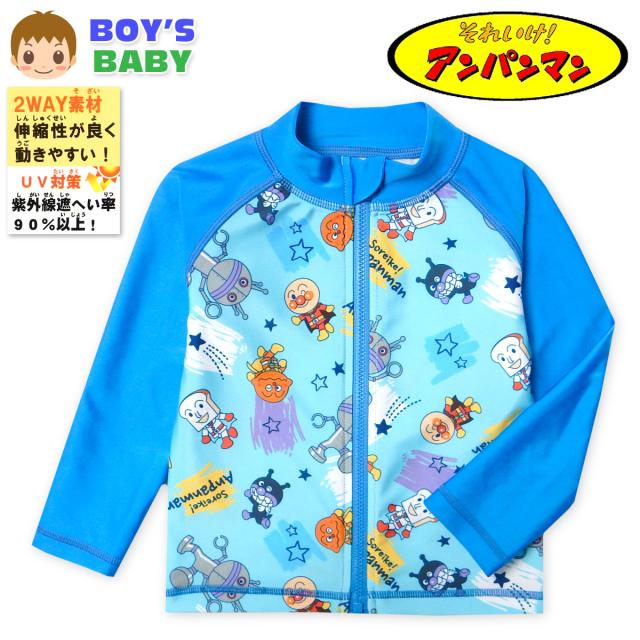 【送料無料】男児 ベビー UVカット 長袖 ラッシュガード アンパンマン フルジップ 水着 スイムウェア 2WAYストレッチ 伸縮性 男の子 80cm 90cm 95cm iw-1365【メール便対応】