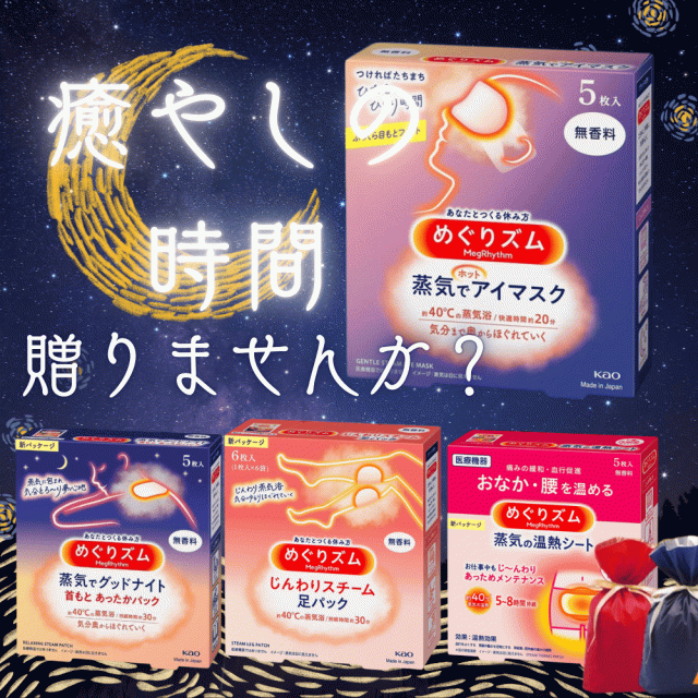 めぐりズムの蒸気でホットアイマスクは、疲れた目と目元を優しく癒す製品です。
