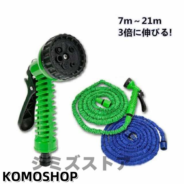 伸びるホース 伸縮ホース 改良版 ホース 伸びる おしゃれ 7m ? 21m 3倍に伸びる 軽量 散水ホース 絡まない 洗車 水撒きホース 散水ノズル 高圧 ガーデニング 庭