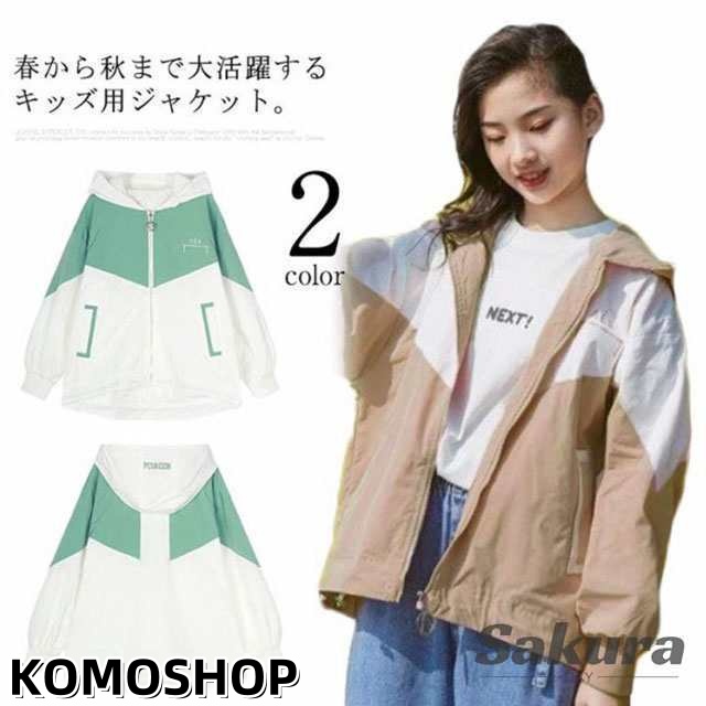 ジップパーカー ジップアップパーカー ウィンドブレーカー 女の子 マウンテンパーカー 春秋 フード付き キッズ 春物 秋冬 春服 秋物 防風 薄手 春コート ジップアップ ジャンパー 配色 切り替え お洒落 ブルゾン ガールズ トップス