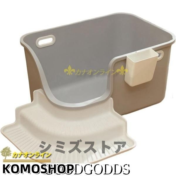 大型猫トイレ オープンタイプ 猫用トイレ本体 大きめ 深め 猫のトイレ 広々サイズ ゆったり 砂飛び散り防止 大開口 スコップ付き
