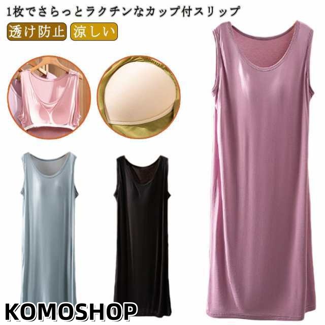 キャミワンピース カップ付き ブラ キャミソール スリップ Uネック インナー ランジェリー ノンワイヤー キャミワンピ ロング 涼しい カップ付き 袖なし ワンピの下 下着 肌着 透け防止 下着透け対策