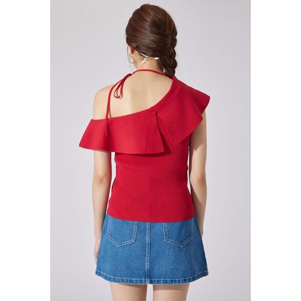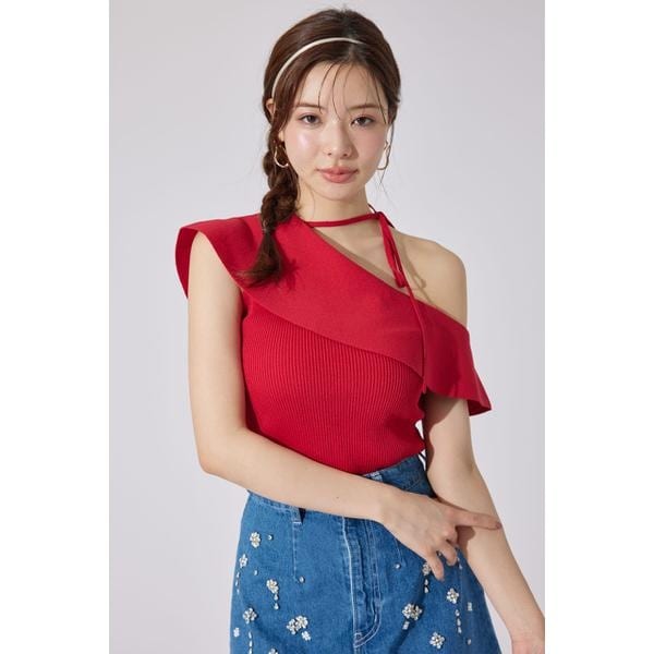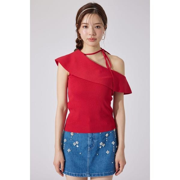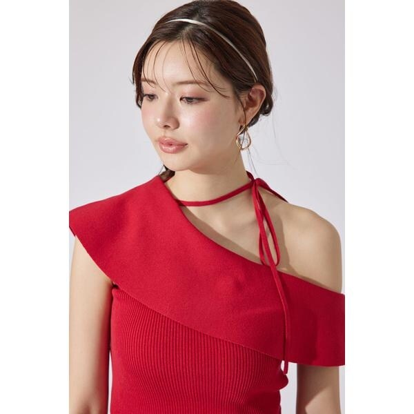 【1枚で決まる、大人モードなニットトップス】■ポイントサラッと軽く着用いただけるニットトップス。流れるラインが女性らしい印象を与えるワンショルダーデザインがポイントです。首元のチョーカーは取り外しが可能でマルチにお使いいただけます。■ディテールデコルテラインが美しく見えるワンショルダーデザイン。二の腕カバーもできるのでスタイルアップ効果もばっちりです。■スタイリングデニムと合わせて女っぽカジュアルに。マーメイドスカートなどと合わせてキレイ目コーデも◎様々なアイテムとの相性ばっちりです。■生地透け感:なし裏 地:なし伸縮性:あり光沢感:なし厚 さ:なし■商品のお気に入り登録お気に入りアイテムの再入荷・在庫1点などの通知を受け取ることができます。[注意事項]※画像の商品はサンプルです。実際の商品と仕様、加工が若干異なる場合があります。※画像の商品は光の照射や角度、お使いのモニター環境により、実物と色味が異なる場合がございます。※着用、お取り扱いの際は、アテンションタグをご確認ください。