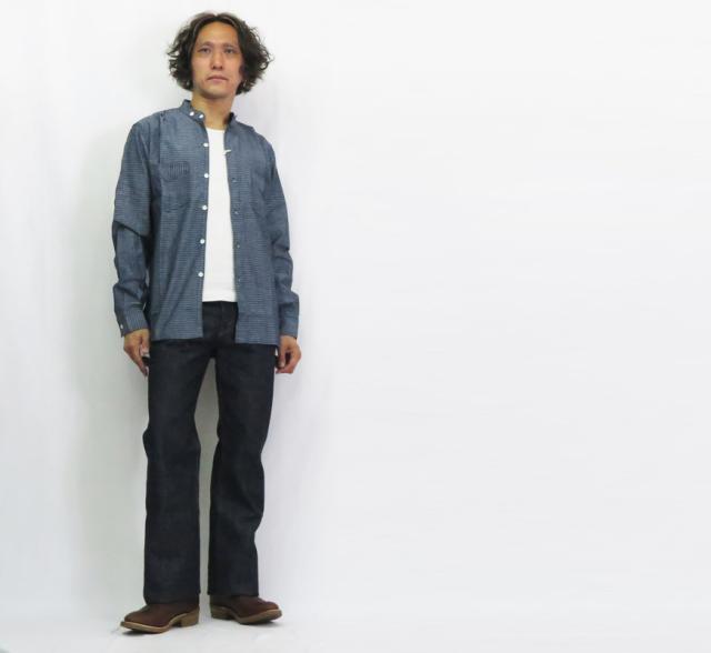 ミスターフリーダム「スポーツマンシャツ」のパターンをバンドカラーにアレンジしたバージョン。