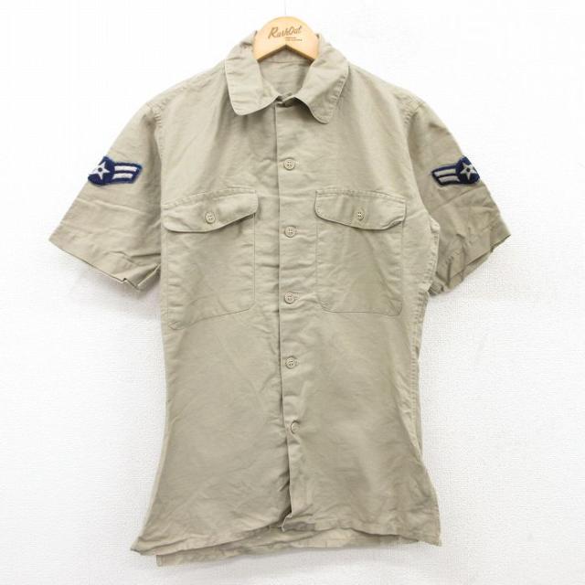 古着 半袖 ビンテージ ミリタリー シャツ メンズ 70年代 70s ベージュ カーキ Sサイズ 中古 トップス 中古 古着