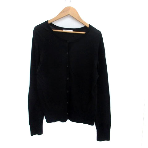 【中古】ナチュラルビューティーベーシック ニットカーディガン ラウンドネック ミドル丈 無地 M 黒