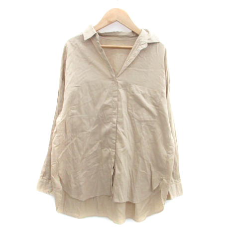 【中古】ビス ViS カジュアルシャツ スキッパーカラー 長袖 無地 F 茶色 ブラウン /HO18 レディース