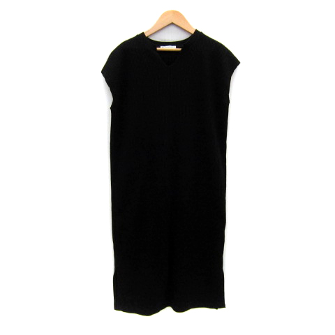 【中古】クラシカルエルフ ワッフルワンピース ロング丈 ノースリーブ スリットネック 無地 M ブラック レディース