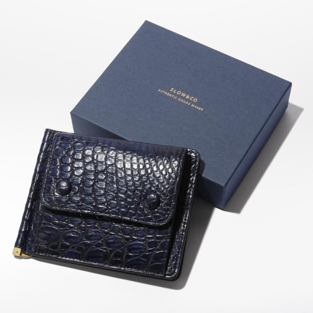商品レビューで+5%|SLOW スロウ 財布 二つ折り財布 マネークリップ クロコダイル レザー 本革 メンズ ブランド 小銭入れ付き ワニ革 藍染 日本製 crocodile
