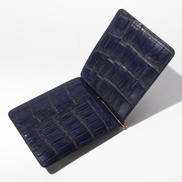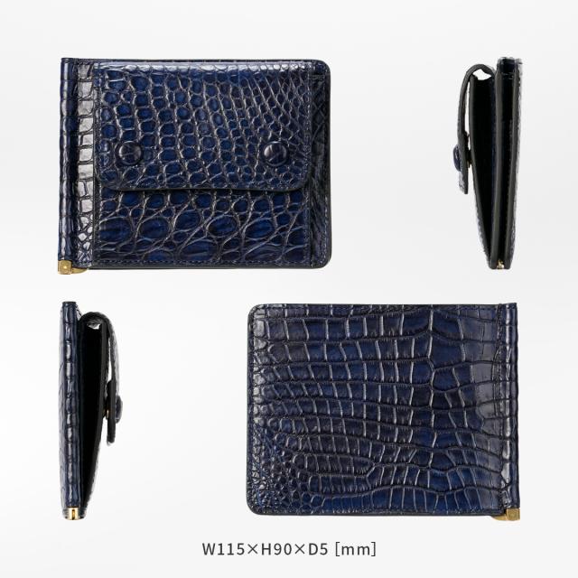 | ■SLOW スロウ / crocodile 藍染め クロコダイルレザー / money clip マネークリップ スナップボタン式 小銭入れ付き【SO912R】 |